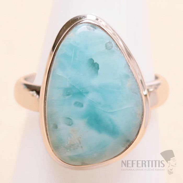 Eleganter Ring Silber mit einem wunderschönen und hochwertigen Larimar-Cabochon , der dem Spiel der Sonnenstrahlen auf der Meeresoberfläche ähnelt. Der Larimarstein ist sorgfältig ausgewählt und weist eine ausgeprägte blaue Farbe und Musterung auf. Larimargröße ca. 2,1 cm. Ag 925. Sie kaufen direkt das abgebildete Schmuckstück.