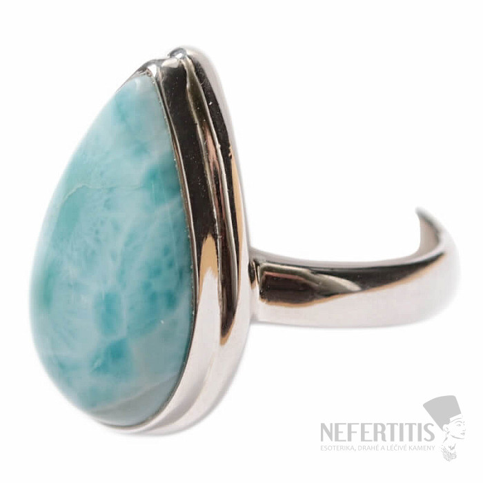 Eleganter Ring Silberschmuck mit einem wunderschönen, hochwertigen Larimar-Cabochon , dessen Lichtspiel an das Spiel der Sonnenstrahlen auf der Meeresoberfläche erinnert. Der Larimar-Stein wurde sorgfältig ausgewählt und besticht durch seine markante blaue Farbe und Maserung. Größe des Larimars: ca. 2 cm. Silber 925. Sie erwerben das abgebildete Schmuckstück.