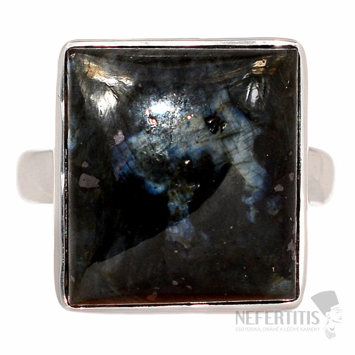 Wunderschöner und einzigartiger Silberring mit natürlichem Larvikit, dessen Schimmer an Sterne am Nachthimmel erinnert. Dieser Stein wird aufgrund seines regenbogenfarbenen Farbenspiels im einfallenden Licht auch schwarzer Mondstein oder schwarzer Labradorit genannt. Silber 925. Lassen Sie sich von der Schönheit und dem Spiel seiner leuchtenden Farben verzaubern, die an Mondstein und Sternenhimmel erinnern. Steingröße ca. 1,5 cm. Sie erwerben das abgebildete Schmuckstück.