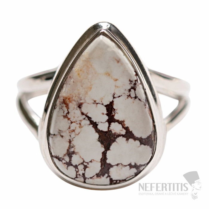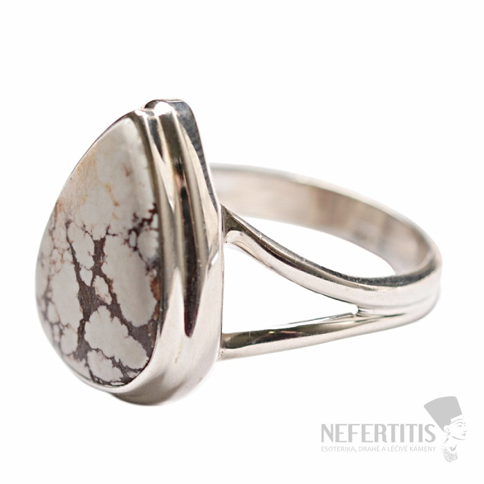 Silberring mit Wildpferdmagnesit, gefunden in Arizona. Ag 925. Diese Art von Magnesit hat ein einzigartiges, unverwechselbares Muster – eine wunderschöne Marmorierung aus weißem Magnesit. Steingröße ca. 1,9 cm. Sie erwerben hier direkt den abgebildeten Schmuck.