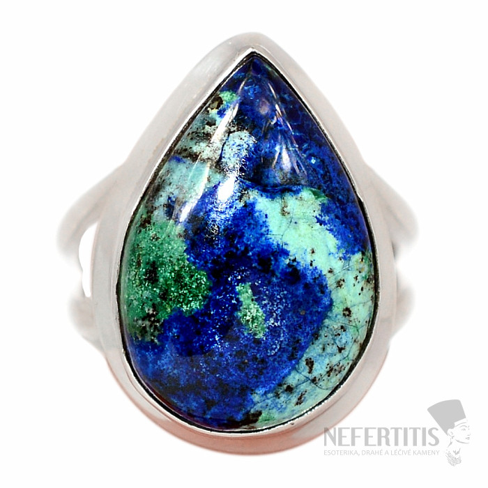 Silberring mit einem markanten Malachit in wunderschönem, dunkelblauem Azurit. Silber 925. Die Kombination aus Malachit und Azurit, die an die Vogelperspektive der Erde erinnert, macht dieses Schmuckstück außergewöhnlich und sehr dekorativ. Sie erwerben den abgebildeten Ring. Steingröße ca. 1,8 cm.