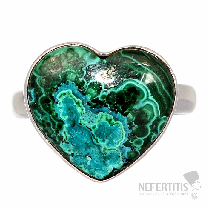 Ein wunderschöner Silberring mit einem magisch gefärbten Chrysokoll-Malachit-Stein wird Sie auf den ersten Blick mit der Schönheit seiner Farben, seines Musters und seiner Form verzaubern. Ein einzigartiges Schmuckstück, das im Handel nur selten zu finden ist. Ein sehr dekorativer und attraktiver Ring. Silber 925. Limitiertes Angebot – nur wenige Exemplare verfügbar. Sie erwerben den abgebildeten Ring. Steingröße ca. 1,3 cm .