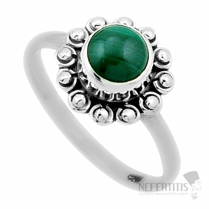 Silberring mit Malachit , dessen tiefgrüne Farbe alle Blicke auf sich zieht. Steingröße ca. 0,6 cm. Silber 925. Sie erwerben das abgebildete Schmuckstück.