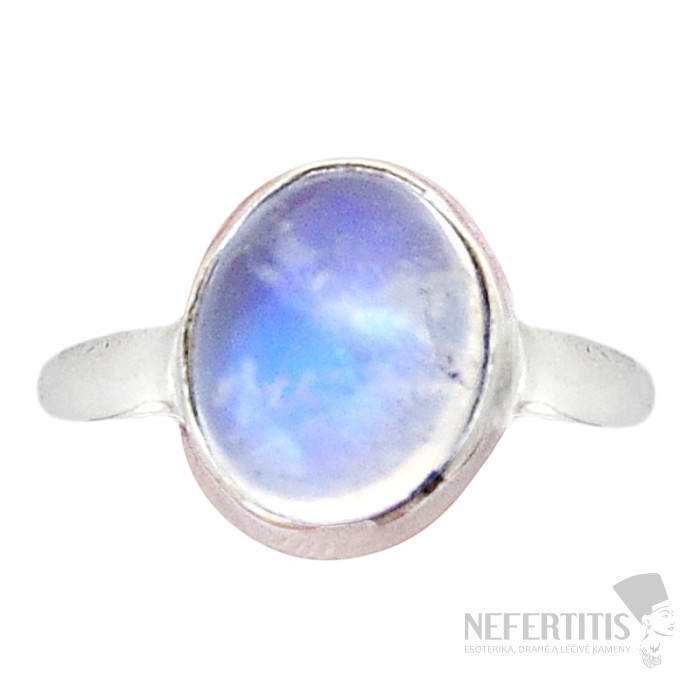 Ein außergewöhnlich schöner, eleganter Silberring mit einem Bluefire-Regenbogenmondstein bringt die Magie seiner Regenbogenfarben und seines „blauen Schimmers“ in Ihr Leben. Dieser Ring wird alle Blicke auf sich ziehen! Die Steine des Rings zeichnen sich durch ein besonders schönes Spiel blauer Reflexe aus. Silber 925. Steingröße ca. 0,9 cm . Sie erwerben das abgebildete Schmuckstück.