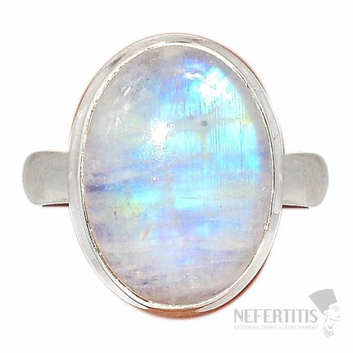 Ein außergewöhnlich schöner, eleganter Silberring mit einem Bluefire-Regenbogenmondstein bringt die Magie seiner Regenbogenfarben und seines „blauen Schimmers“ in Ihr Leben. Dieser Ring wird an Ihrer Hand alle Blicke auf sich ziehen! Die Steine des Rings zeichnen sich durch ein besonders schönes Spiel blauer Reflexe aus. Silber 925. Steingröße ca. 1,8 cm . Sie erwerben das abgebildete Schmuckstück.