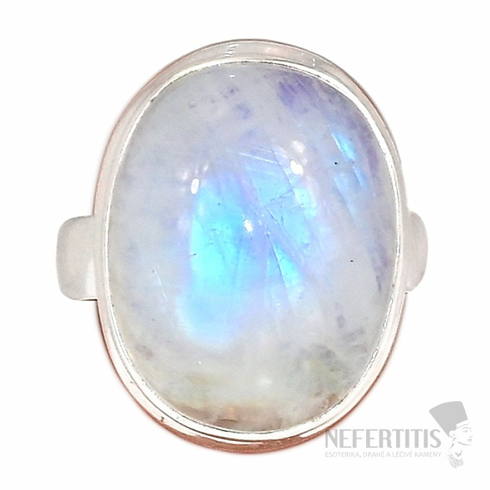 Ein außergewöhnlich schöner, eleganter Silberring mit einem Bluefire-Regenbogenmondstein bringt die Magie seiner Regenbogenfarben und seines „blauen Schimmers“ in Ihr Leben. Dieser Ring wird an Ihrer Hand alle Blicke auf sich ziehen! Die Steine des Rings zeichnen sich durch ein besonders schönes Spiel blauer Reflexe aus. Silber 925. Steingröße ca. 1,8 cm . Sie erwerben das abgebildete Schmuckstück.