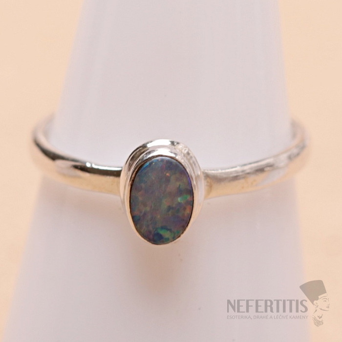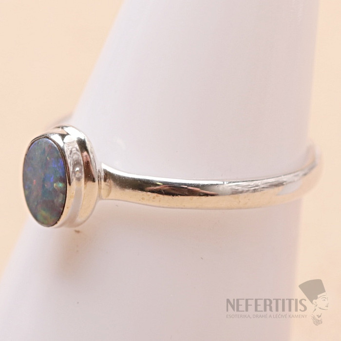 Eleganter Silberring mit australischem Opal mit einem wunderschönen Spiel markanter und satter Farben. Ag 925. Ein beeindruckendes Schmuckstück, dessen Anblick Freude und Gefühle der Harmonie hervorruft. In dem Moment, in dem bei jeder Handbewegung das Licht auf der Oberfläche des Opals aufflammt und jedes Mal faszinierende Funken in einer anderen Farbe aufblitzen, werden Sie sicherlich dem Zauber dieses wunderschönen Steins verfallen. Die Größe des Opal-Dubletten beträgt ca. 0,7 cm. Sie erwerben das abgebildete Schmuckstück.