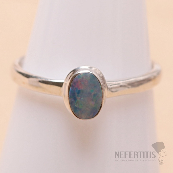 Eleganter Silberring mit australischem Opal mit einem wunderschönen Spiel markanter und satter Farben. Ag 925. Ein beeindruckendes Schmuckstück, dessen Anblick Freude und Gefühle der Harmonie hervorruft. In dem Moment, in dem bei jeder Handbewegung das Licht auf der Oberfläche des Opals aufflammt und jedes Mal faszinierende Funken in einer anderen Farbe aufblitzen, werden Sie sicherlich dem Zauber dieses wunderschönen Steins verfallen. Die Größe des Opal-Dubletten beträgt ca. 0,7 cm. Sie erwerben das abgebildete Schmuckstück.