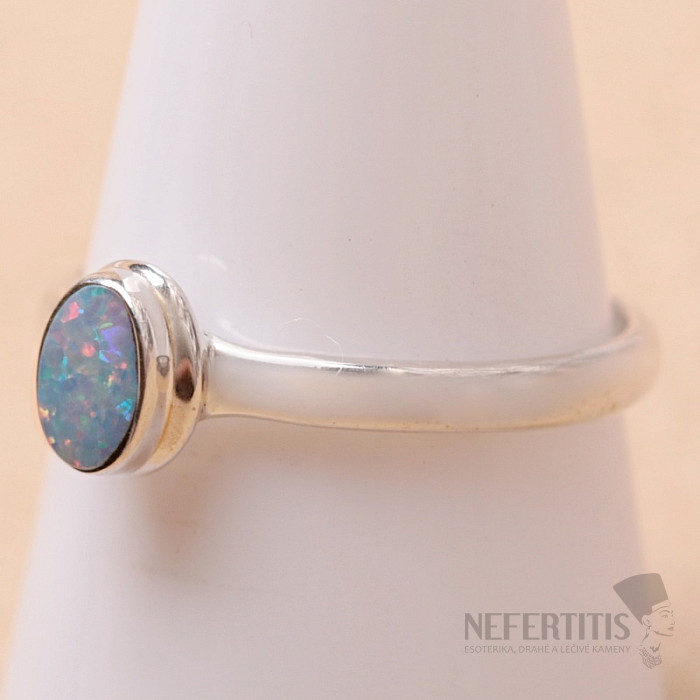 Eleganter Silberring mit australischem Opal mit einem wunderschönen Spiel markanter und satter Farben. Ag 925. Ein beeindruckendes Schmuckstück, dessen Anblick Freude und Gefühle der Harmonie hervorruft. In dem Moment, in dem bei jeder Handbewegung das Licht auf der Oberfläche des Opals aufflammt und jedes Mal faszinierende Funken in einer anderen Farbe aufblitzen, werden Sie sicherlich dem Zauber dieses wunderschönen Steins verfallen. Die Größe des Opal-Dubletten beträgt ca. 0,7 cm. Sie erwerben das abgebildete Schmuckstück.