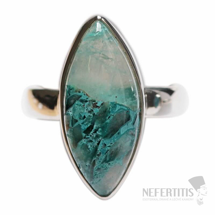 Bezaubernder Silberring mit seltenem und von Sammlern geschätztem natürlichem Quantum Quattro. 925er Silber. Quantum Quattro ist eine Kombination aus vier Mineralien – Shattuckit, Dioptas, Malachit und Chrysokoll. Jedes Schmuckstück ist ein Unikat und regt dank der Farbkombination und Anordnung der Mineralien die Fantasie an und erinnert an eine Vogelperspektive auf die Erde. Sie erhalten ein wunderschönes Schmuckstück, das niemandem entgeht und das zu verschiedenen Anlässen passt. Sie kaufen das abgebildete Schmuckstück direkt. Steingröße ca. 2,1 cm.