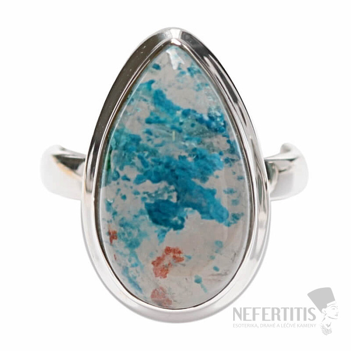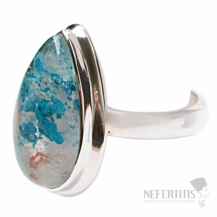 Bezaubernder Silberring mit seltenem und von Sammlern geschätztem natürlichem Quantum Quattro. 925er Silber. Quantum Quattro ist eine Kombination aus vier Mineralien – Shattuckit, Dioptas, Malachit und Chrysokoll. Jedes Schmuckstück ist ein Unikat und regt dank der Farbkombination und Anordnung der Mineralien die Fantasie an und erinnert an eine Vogelperspektive auf die Erde. Sie erhalten ein wunderschönes Schmuckstück, das niemandem entgeht und das zu verschiedenen Anlässen passt. Sie kaufen das abgebildete Schmuckstück direkt. Steingröße ca. 2,1 cm.
