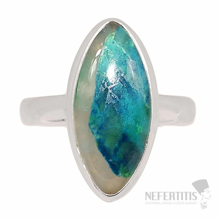 Bezaubernder Silberring mit seltenem und begehrtem Quantum quattro-Stein. Silber 925. Quantum quattro ist eine Kombination aus vier Mineralien: Shattuckit, Dioptas, Malachit und Chrysokoll. Jedes Schmuckstück ist ein Unikat und regt dank der Farbkombination und Anordnung der Mineralien die Fantasie an – wie aus der Vogelperspektive betrachtet. Sie erhalten ein wunderschönes Schmuckstück, das alle Blicke auf sich zieht und zu verschiedenen Anlässen passt. Sie erwerben genau den abgebildeten Ring. Steingröße ca. 2 cm.
