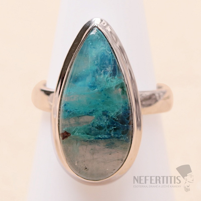Bezaubernder Silberring mit seltenem und von Sammlern geschätztem natürlichem Quantum Quattro. 925er Silber. Quantum Quattro ist eine Kombination aus vier Mineralien – Shattuckit, Dioptas, Malachit und Chrysokoll. Jedes Schmuckstück ist ein Unikat und regt dank der Farbkombination und Anordnung der Mineralien die Fantasie an und erinnert an eine Vogelperspektive auf die Erde. Sie erhalten ein wunderschönes Schmuckstück, das niemandem entgeht und das zu verschiedenen Anlässen passt. Sie kaufen das abgebildete Schmuckstück direkt. Steingröße ca. 2,2 cm.