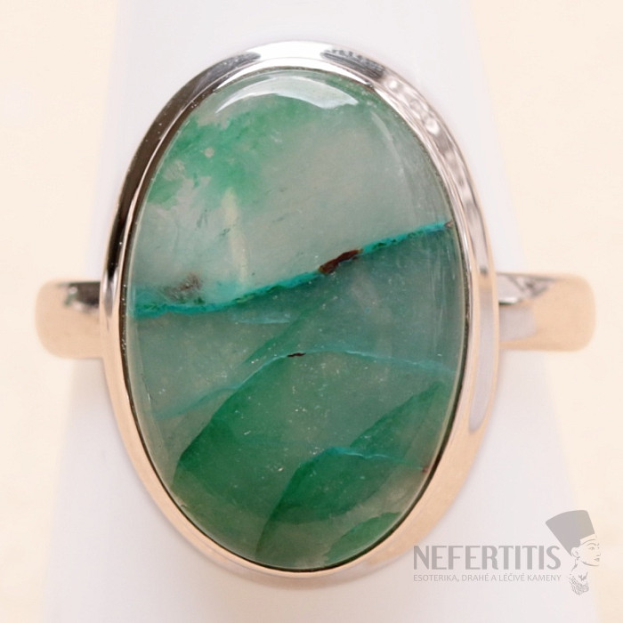 Bezaubernder Silberring mit seltenem und von Sammlern geschätztem natürlichem Quantum Quattro. 925er Silber. Quantum Quattro ist eine Kombination aus vier Mineralien – Shattuckit, Dioptas, Malachit und Chrysokoll. Jedes Schmuckstück ist ein Unikat und regt dank der Farbkombination und Anordnung der Mineralien die Fantasie an und erinnert an eine Vogelperspektive auf die Erde. Sie erhalten ein wunderschönes Schmuckstück, das niemandem entgeht und das zu verschiedenen Anlässen passt. Sie kaufen direkt das abgebildete Schmuckstück. Steingröße ca. 2,1 cm.