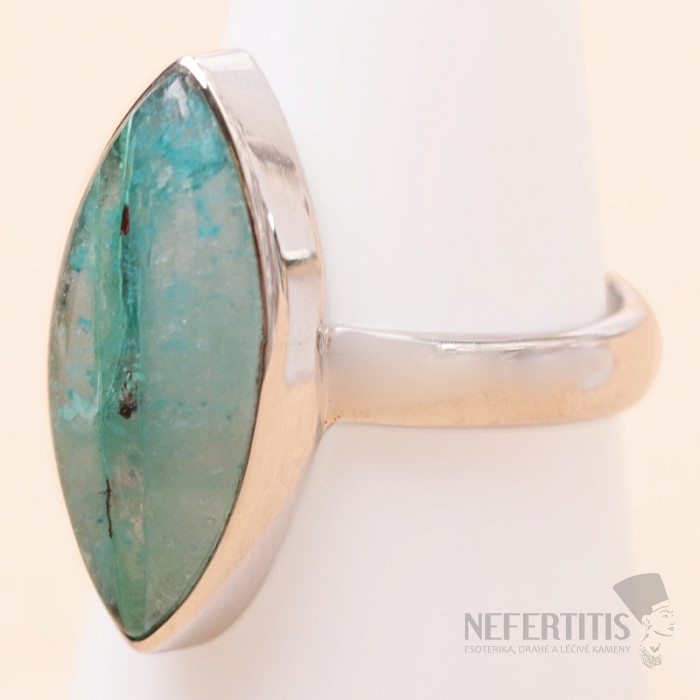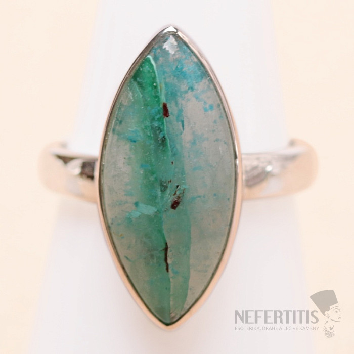 Bezaubernder Silberring mit seltenem und von Sammlern geschätztem natürlichem Quantum Quattro. 925er Silber. Quantum Quattro ist eine Kombination aus vier Mineralien – Shattuckit, Dioptas, Malachit und Chrysokoll. Jedes Schmuckstück ist ein Unikat und regt dank der Farbkombination und Anordnung der Mineralien die Fantasie an und erinnert an eine Vogelperspektive auf die Erde. Sie erhalten ein wunderschönes Schmuckstück, das niemandem entgeht und das zu verschiedenen Anlässen passt. Sie kaufen das abgebildete Schmuckstück direkt. Steingröße ca. 2,1 cm.