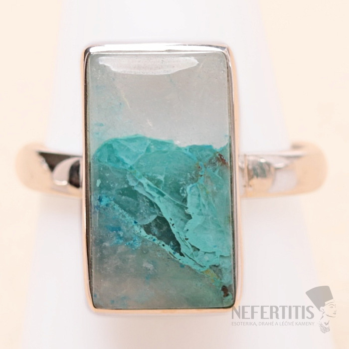 Bezaubernder Silberring mit seltenem und von Sammlern geschätztem natürlichem Quantum Quattro. 925er Silber. Quantum Quattro ist eine Kombination aus vier Mineralien – Shattuckit, Dioptas, Malachit und Chrysokoll. Jedes Schmuckstück ist ein Unikat und regt dank der Farbkombination und Anordnung der Mineralien die Fantasie an und erinnert an eine Vogelperspektive auf die Erde. Sie erhalten ein wunderschönes Schmuckstück, das niemandem entgeht und das zu verschiedenen Anlässen passt. Sie kaufen das abgebildete Schmuckstück direkt. Steingröße ca. 1,9 cm.