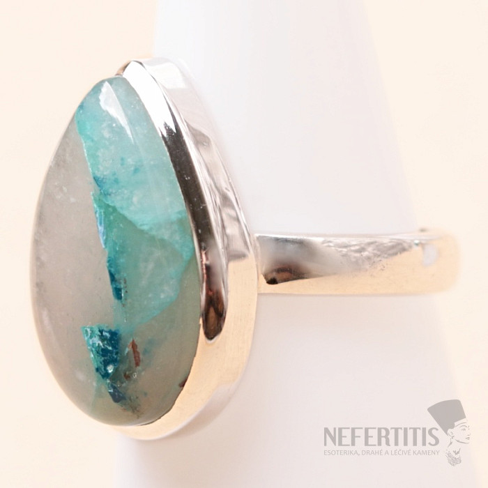 Bezaubernder Silberring mit seltenem und von Sammlern geschätztem natürlichem Quantum Quattro. 925er Silber. Quantum Quattro ist eine Kombination aus vier Mineralien – Shattuckit, Dioptas, Malachit und Chrysokoll. Jedes Schmuckstück ist ein Unikat und regt dank der Farbkombination und Anordnung der Mineralien die Fantasie an und erinnert an eine Vogelperspektive auf die Erde. Sie erhalten ein wunderschönes Schmuckstück, das niemandem entgeht und das zu verschiedenen Anlässen passt. Sie kaufen das abgebildete Schmuckstück direkt. Steingröße ca. 1,9 cm.