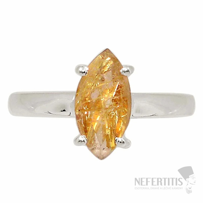 Ein einzigartiger Ring mit geschliffenem Sagenit erstrahlt dank goldener Rutil-Einschlüsse wie die Sommersonne. Ein Schmuckstück, das Optimismus und gute Laune verbreitet. Sagenit – goldener Rutil – wird oft auch als „Engelshaar“ bezeichnet. Silber 925. Sie erwerben den abgebildeten Ring. Steingröße ca. 1,1 cm.