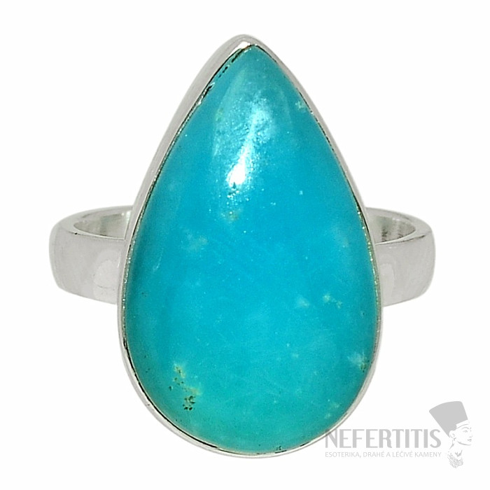 Ein bezaubernder Silberring mit azurblauem Smithsonit vermittelt auf den ersten Blick ein Gefühl von Frieden und Harmonie. Dank seiner Form, Größe und der schlumpfblauen Farbe des Steins ist dies ein außergewöhnlich schönes Schmuckstück. Silber 925. Sie erwerben den abgebildeten Schmuck. Steingröße ca. 1,8 cm.