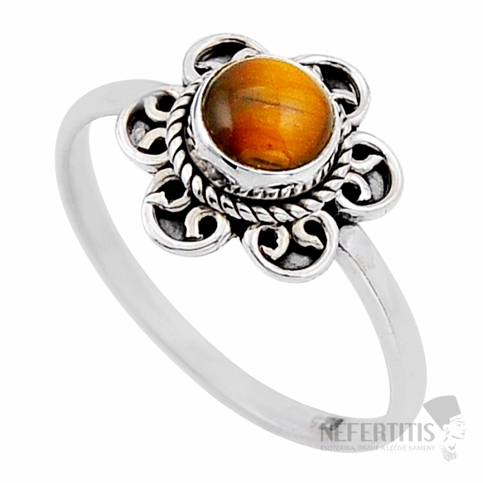 Ein wunderschöner Silberring mit einem Tigeraugen- Cabochon besticht durch sein faszinierendes, seidig-glänzendes Gold-Braun-Schimmern. Der Stein wurde sorgfältig ausgewählt und weist einen unverwechselbaren „Katzenaugen“-Effekt auf. Seine goldene Schönheit macht diesen Ring zu einem absoluten Hingucker und einem äußerst dekorativen Schmuckstück. Silber 925. Steingröße ca. 0,6 cm. Sie erwerben den abgebildeten Ring.