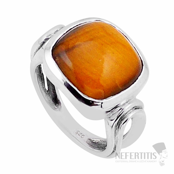 Ein wunderschöner Silberring mit einem Tigeraugen- Cabochon glänzt durch ein schönes und deutlich sichtbares Spiel seiner seidig glänzenden Gold- und Brauntöne. Der Stein in diesem Ring ist sorgfältig ausgewählt und weist einen unverwechselbaren „Katzenaugen“-Effekt auf. Die goldene Schönheit macht diesen Ring zu einem wirklich unübersehbaren und sehr dekorativen Schmuckstück. Ag 925. Steingröße ca. 1,4 cm. Sie erwerben das abgebildete Schmuckstück.