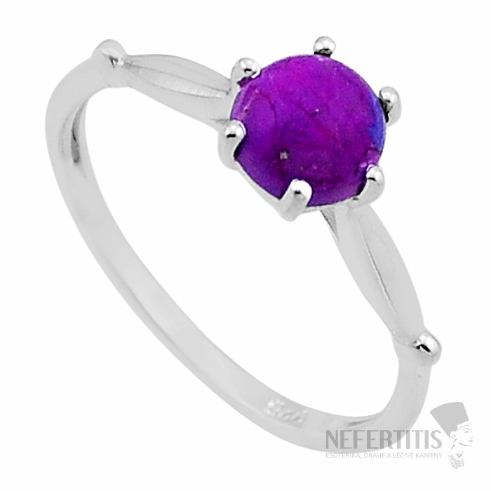 Ein außergewöhnlicher Silberring mit Stücken natürlichen Türkis , die durch Kupfer zu einem beeindruckenden Cabochon in wunderschönem Purpurviolett verbunden sind. Diese Farbe wird durch Färben des Steins erzielt. Schmuck dieser Art erfreut sich weltweit zunehmender Beliebtheit, da die Preise für massiven, natürlichen Türkis stetig steigen. Auf diese Weise gefertigte Cabochons gehören heute zu den wenigen Möglichkeiten, Schmuck mit natürlichem Türkis zu einem relativ erschwinglichen Preis zu erwerben. Silber 925. Steingröße ca. 0,6 cm. Sie erwerben genau den abgebildeten Schmuck.