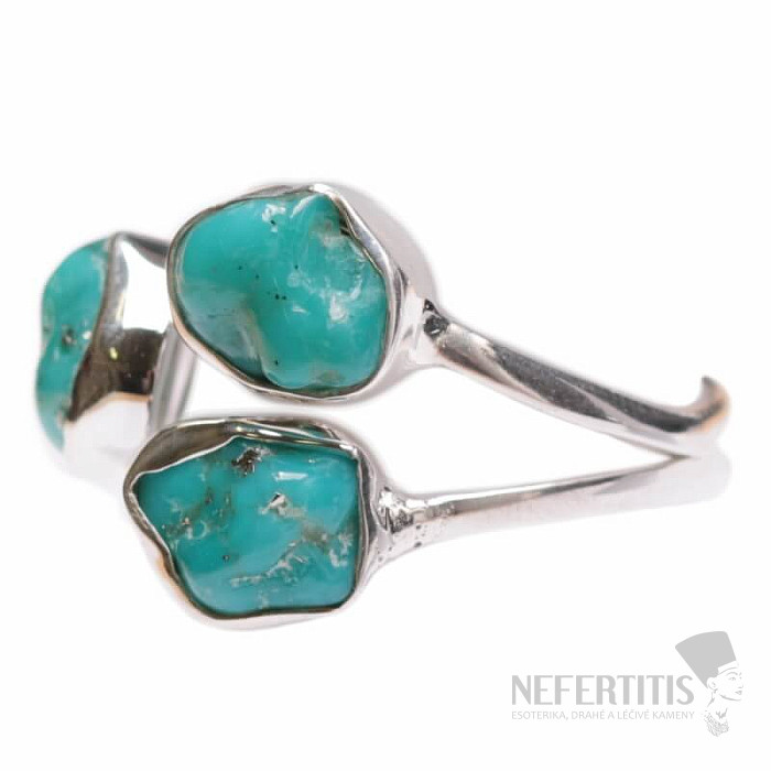 Einzigartiger und sehr eleganter Silberring aus blauem Türkis , dem sogenannten „Kingman-Türkis“, abgebaut in der Kingman-Region in Arizona, USA. Dieser hochwertige Stein ist bekannt für seine satte blau-grüne Farbe und die charakteristische Maserung. Silber 925. Die einzelnen Steine haben eine Größe von ca. 0,5–0,6 cm. Sie erwerben das abgebildete Schmuckstück.