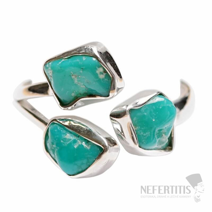 Einzigartiger und sehr eleganter Silberring aus blauem Türkis , dem sogenannten „Kingman-Türkis“, abgebaut in der Kingman-Region in Arizona, USA. Dieser hochwertige Stein ist bekannt für seine satte blau-grüne Farbe und die charakteristische Maserung. Silber 925. Die einzelnen Steine haben eine Größe von ca. 0,5–0,6 cm. Sie erwerben das abgebildete Schmuckstück.