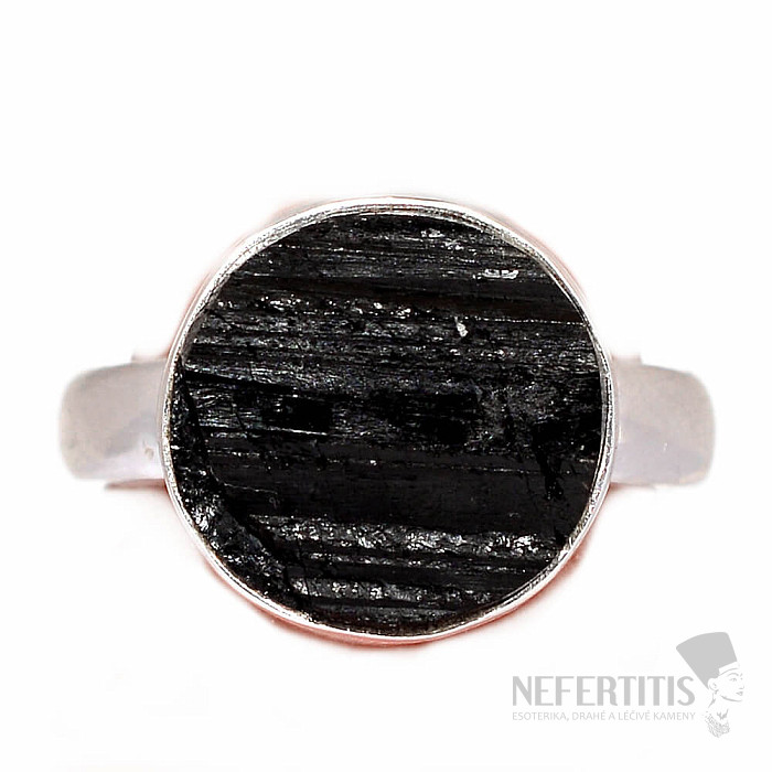 Attraktiver, eleganter und geheimnisvoller Ring aus einem großen, rohen schwarzen Turmalin- Skoryl in Silber. Die schwarze Farbe des Turmalins bildet einen wunderschönen Kontrast zum Glanz des Silbers und verleiht diesem Ring Eleganz und macht ihn zu einem äußerst dekorativen Schmuckstück. Schwarze, rohe Turmaline weisen häufig Risse auf – dies ist ihr charakteristisches Merkmal und ein Beweis für die Echtheit des natürlichen Turmalins. Silber 925. Steingröße ca. 1,3 cm. Sie erwerben das abgebildete Schmuckstück.