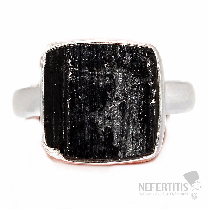 Attraktiver, eleganter und geheimnisvoller Ring aus einem großen, rohen schwarzen Turmalin- Skoryl in Silber. Die schwarze Farbe des Turmalins bildet einen wunderschönen Kontrast zum Glanz der Silberfassung und verleiht diesem Ring Eleganz und macht ihn zu einem äußerst dekorativen Schmuckstück. Schwarze, rohe Turmaline weisen häufig Risse auf – dies ist ihr charakteristisches Merkmal und ein Beweis für die Echtheit des natürlichen Turmalins. Silber 925. Steingröße ca. 1,4 cm. Sie erwerben das abgebildete Schmuckstück.