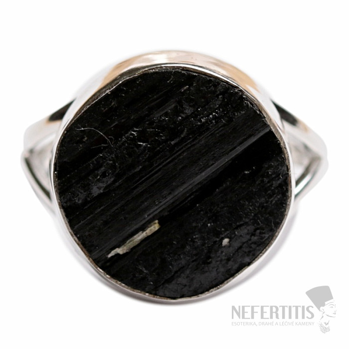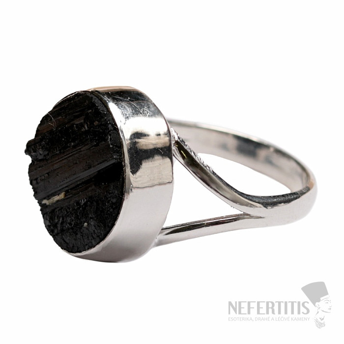Attraktiver, eleganter und geheimnisvoller Ring aus einem großen, rohen schwarzen Turmalin- Skoryl in Silber. Die schwarze Farbe des Turmalins bildet einen wunderschönen Kontrast zum Glanz der Silberfassung und verleiht diesem Ring Eleganz und macht ihn zu einem äußerst dekorativen Schmuckstück. Schwarze, rohe Turmaline weisen häufig Risse auf – dies ist ihr charakteristisches Merkmal und ein Beweis für die Echtheit des natürlichen Turmalins. Silber 925. Steingröße ca. 1,6 cm. Sie erwerben das abgebildete Schmuckstück.