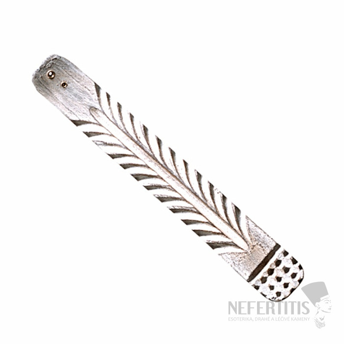 Entdecken Sie die Magie der Schlichtheit mit diesem hölzernen Räucherstäbchenhalter, verziert mit einem federförmigen Ornament . Handgefertigt aus Naturholz, das die Wärme und Energie der Natur in sich trägt, ist er nicht nur eine praktische, sondern auch eine ästhetische Bereicherung für Ihr Zuhause. Abbildung beispielhaft.