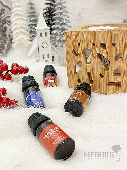 Die Aromatherapie-Mischung WINTER von Nefertitis besteht aus 100 % natürlichen ätherischen Ölen und verströmt einen waldig-balsamischen Duft mit Kräuter- und Zitrusnoten. Sie schafft eine festliche, behagliche und entspannende Atmosphäre. Die Mischung enthält ätherische Öle aus Süßorange, Tanne, Muskatellersalbei, Mandarine und Kiefer.